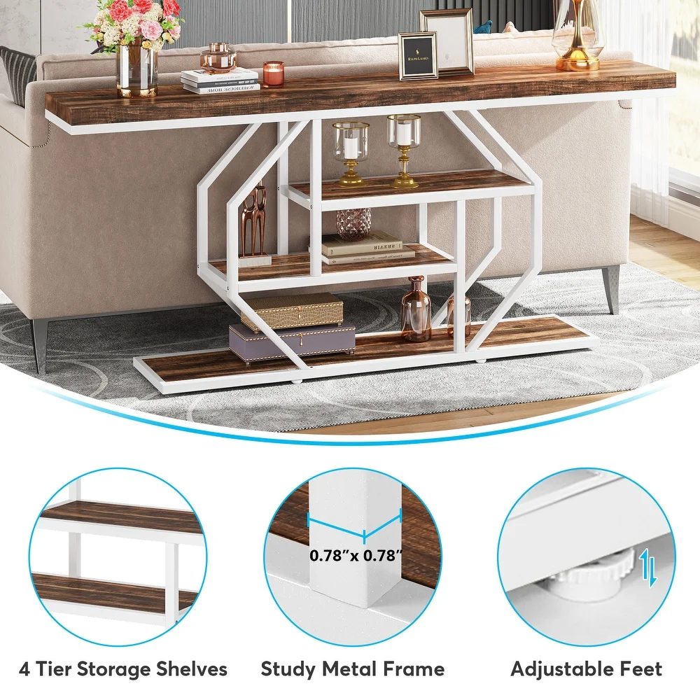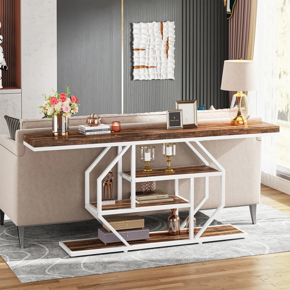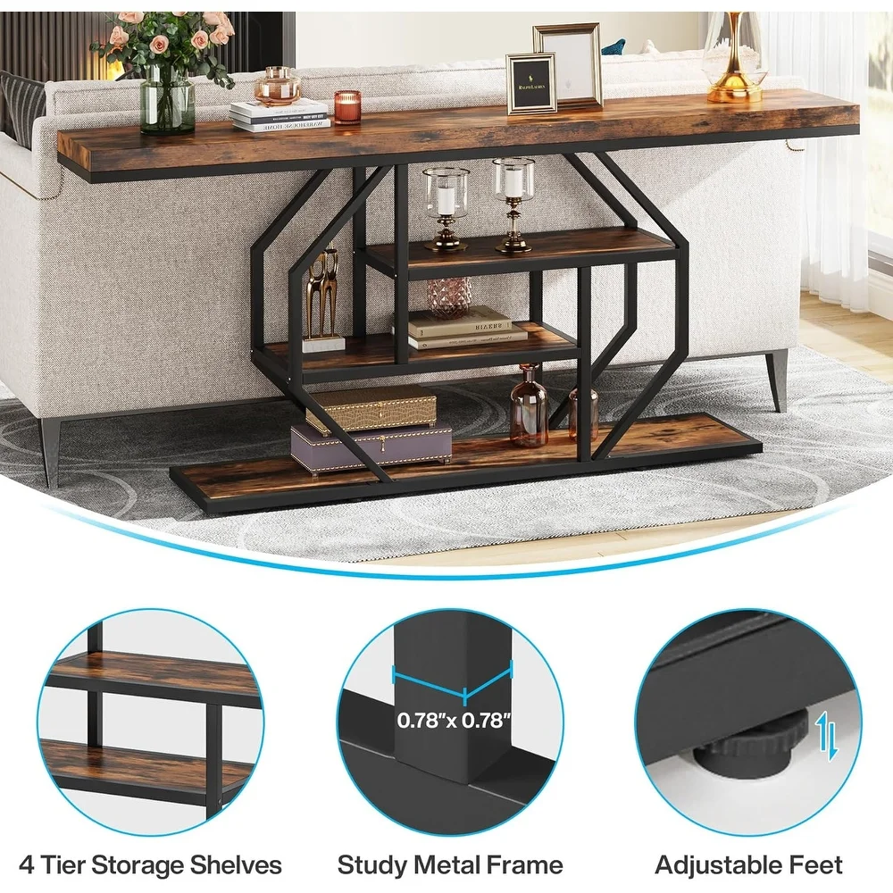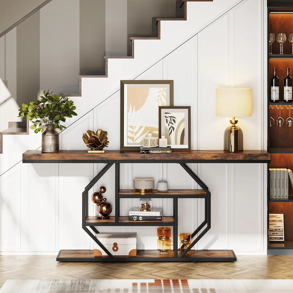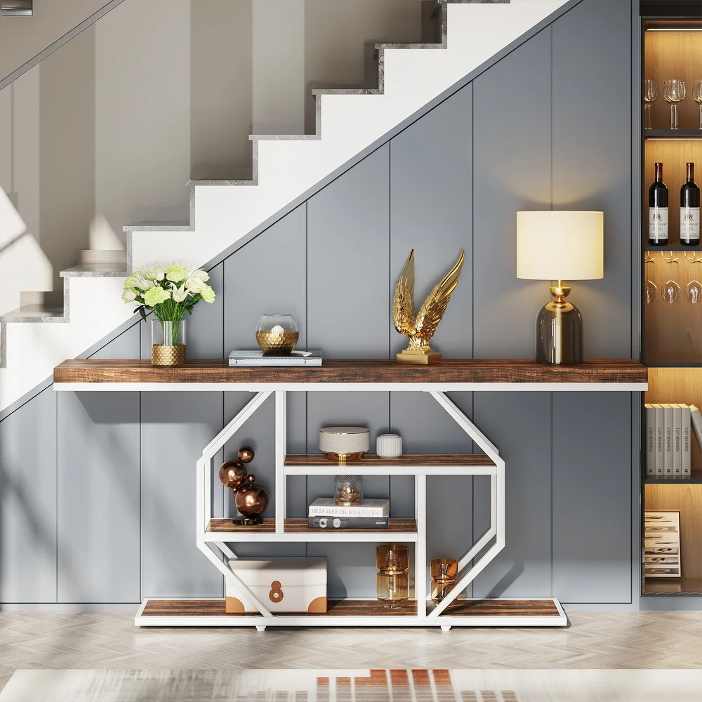 Designed with both style and functionality in mind, this console table provides ample surface space for displaying decorative items or serving as a functional area for everyday use. The unique heptagon-shaped legs frame not only adds visual interest but also ensures stability and durability.