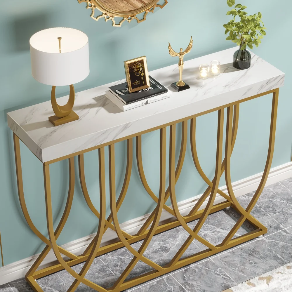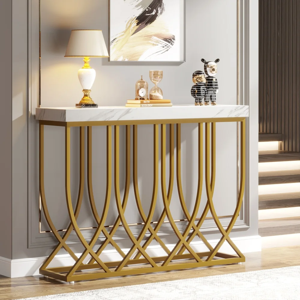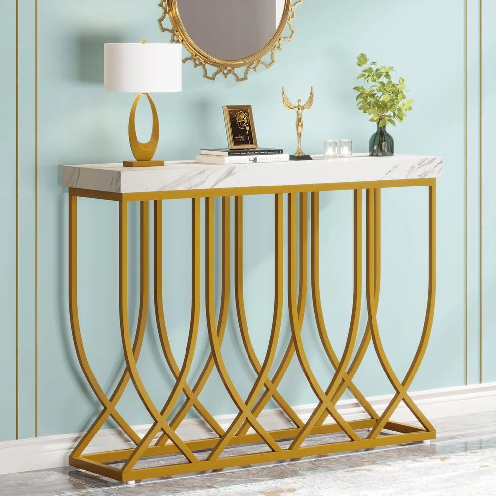 Golden Elegance: Iron and Marble Textured Console Table
